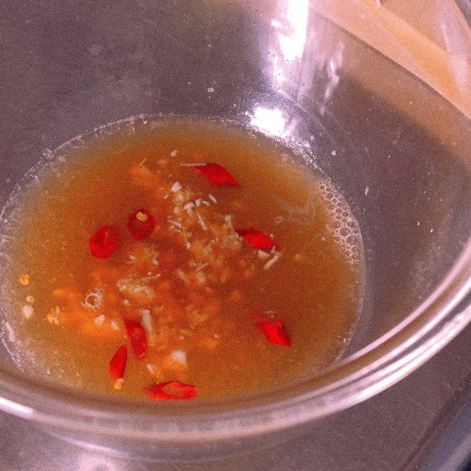 ①にんにくはみじん切りに、赤唐辛子は斜め切りにする。★の材料とともにボウルに入れ、混ぜ合わせる。